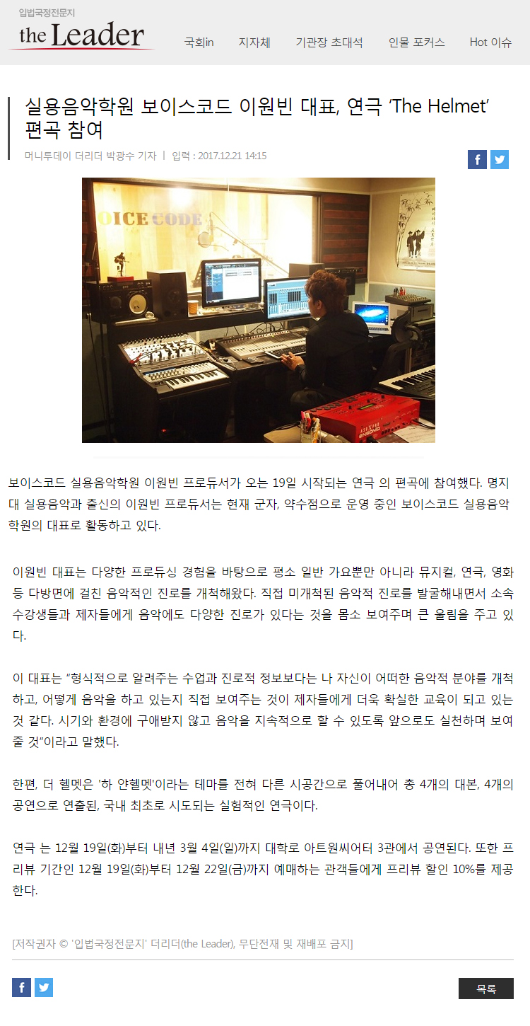 ÃÖ±Ù ½ÃÀÛµÈ ¿¬±Ø 'The Helmet'ÀÇ Æí°îÀ» ÁøÇàÇÏ¿´½À´Ï´Ù.^^